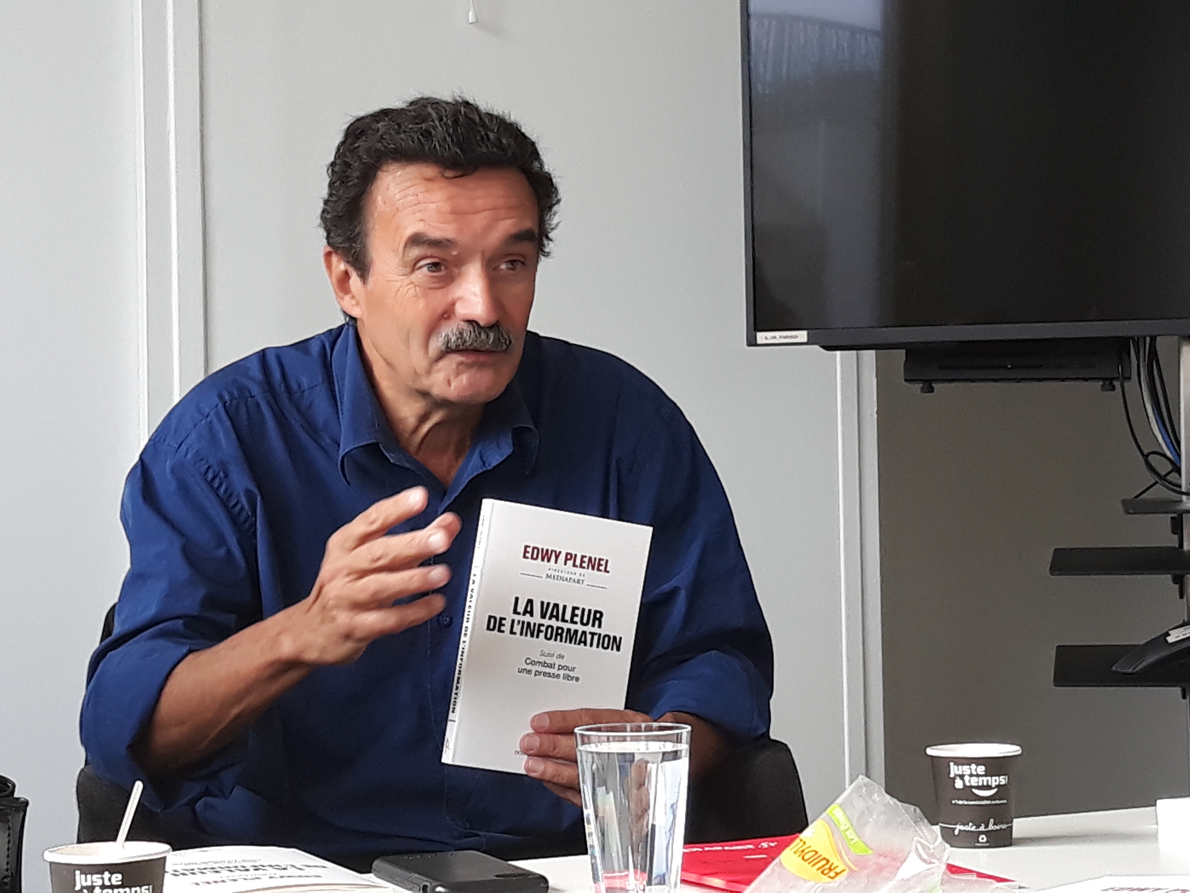 La rencontre s’est clôturée avec une séance de dédicaces du livre La valeur de l’information publié en mars 2018 par la maison d’édition Don Quichotte que l’auteur même, Edwy Plenel, a offert et dédicacé à tous les membres de la délégation de la MDJ.