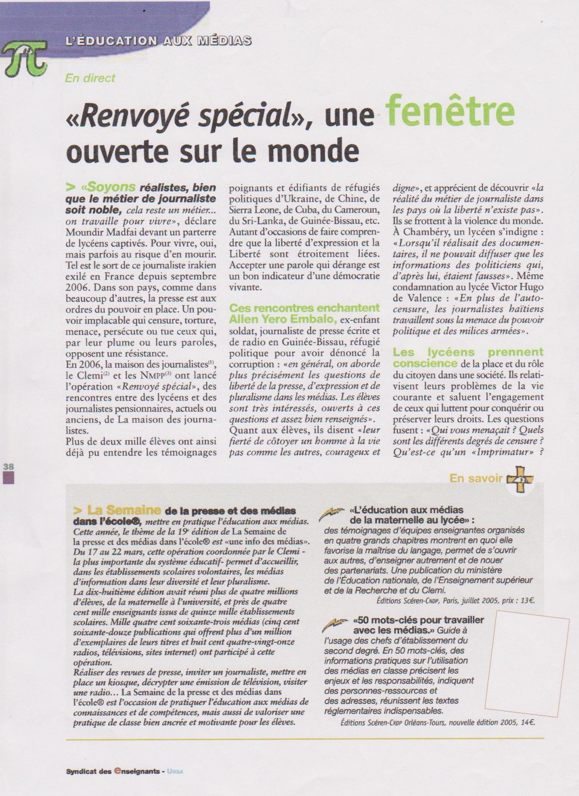 Par le journal du Syndicat des enseignants – UNSA, 2006