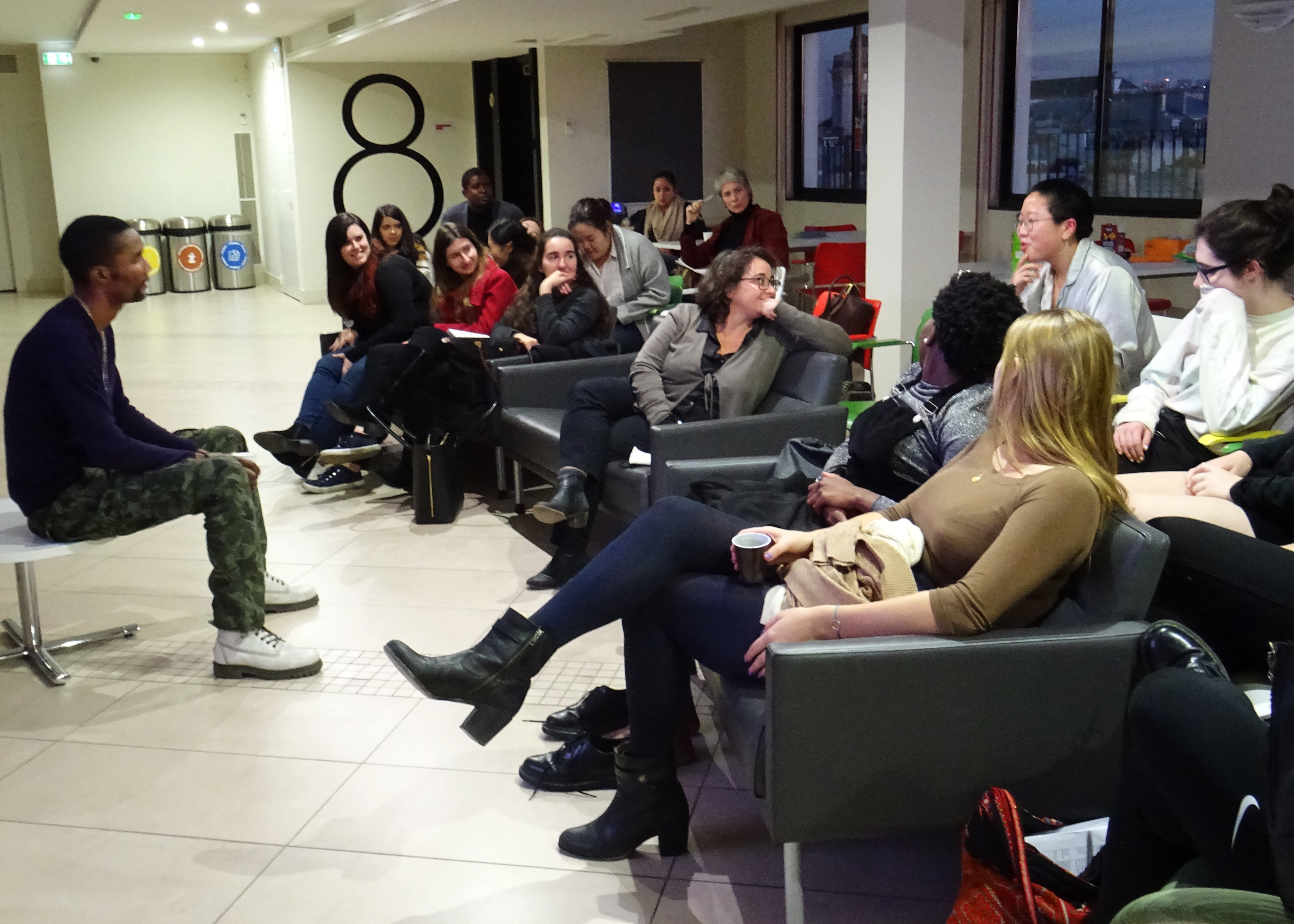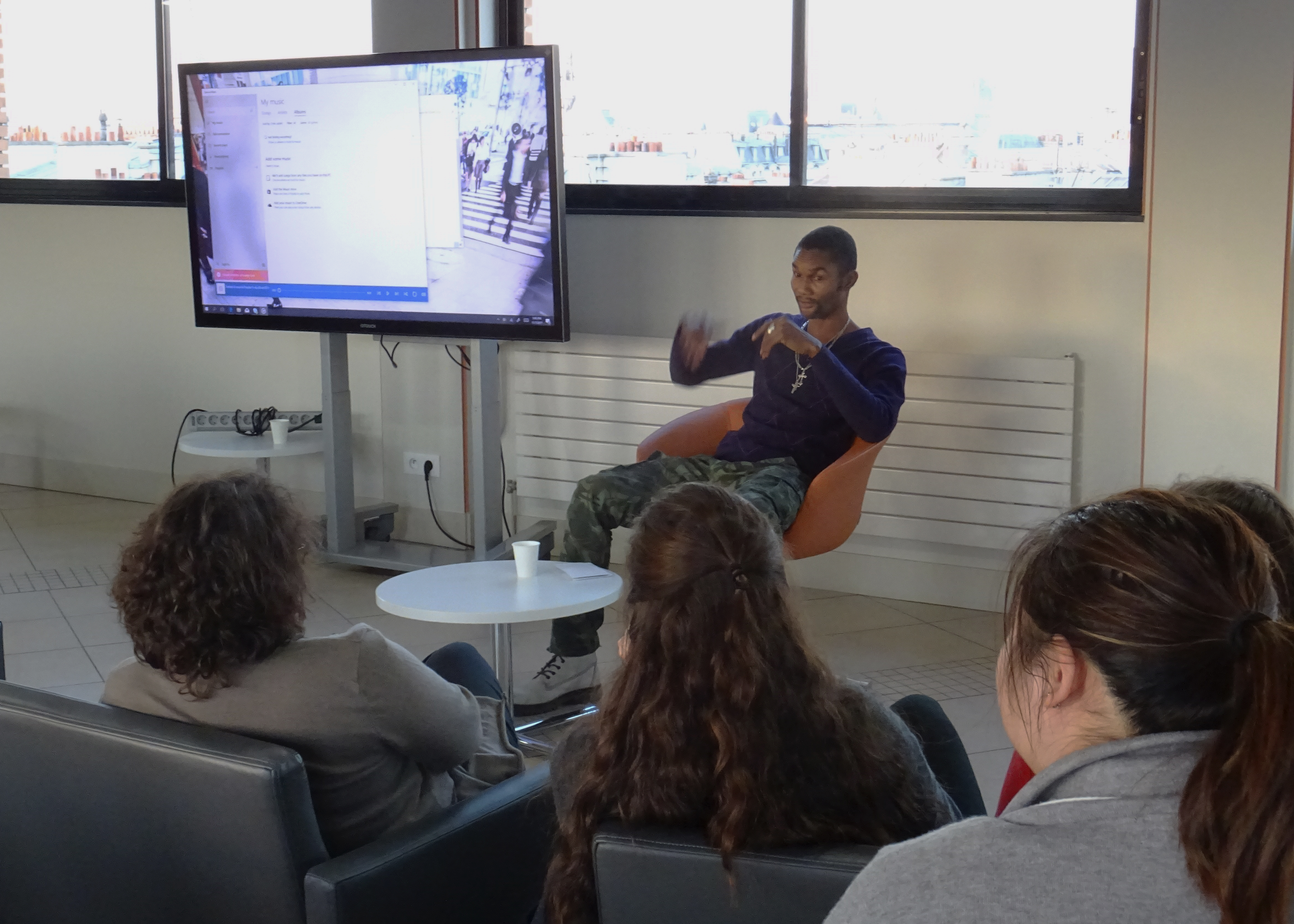 « La rencontre a été la hauteur de l’enthousiasme et de leur intérêt que les élèves ont porté pour la préparer! L’échange a été porteur et Romaric a su mener avec finesse et délicatesse sa prise de paroles pour relater des faits durs pourtant, des réalités qui l’ont mené vers l’exil ! J’y ai vu l’art de conter africain. Les élèves captivés sont tous restés 2 heures au lieu d’une ! En résumé une belle rencontre humaine ! Ce matin ils reviennent vers moi pour en parler parce qu’ils ont été touchés ! Merci ! Merci ! » – Isabelle G., Enseignante-documentaliste, CDI Lycée Sarda